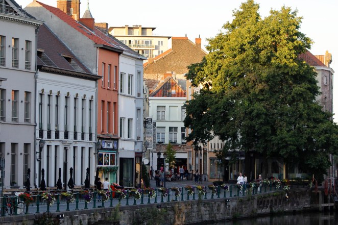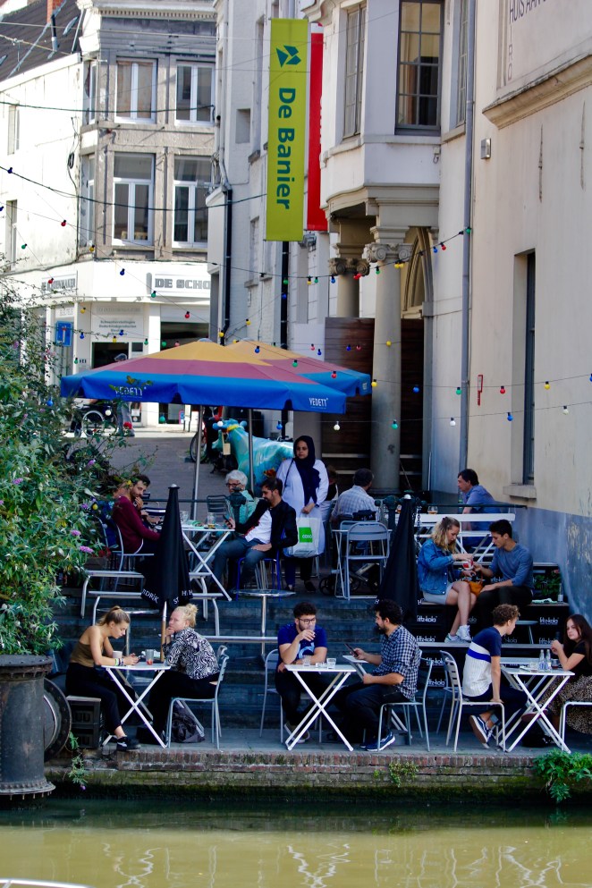 We grabbed a cab at the Gent-Sint-Pietrs train station and headed into the old town, winding down streets lined by cafes, bars, restaurants, and galleries. We’re staying in the historic Patershol neighbourhood, which was in years past a working and warehouse quarter (Vancouverites, think Yaletown) and is now very trendy.