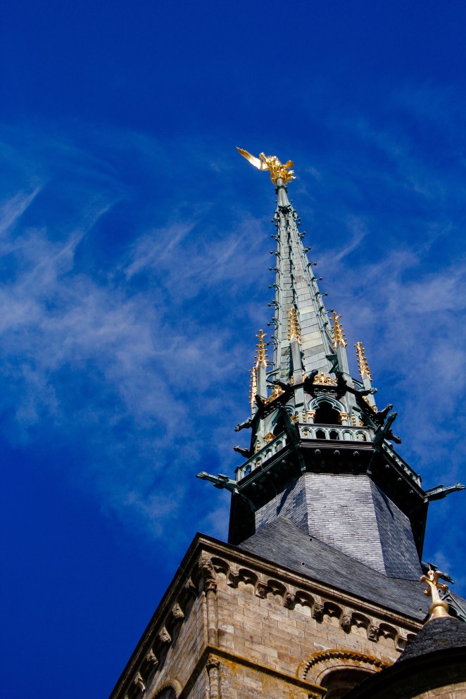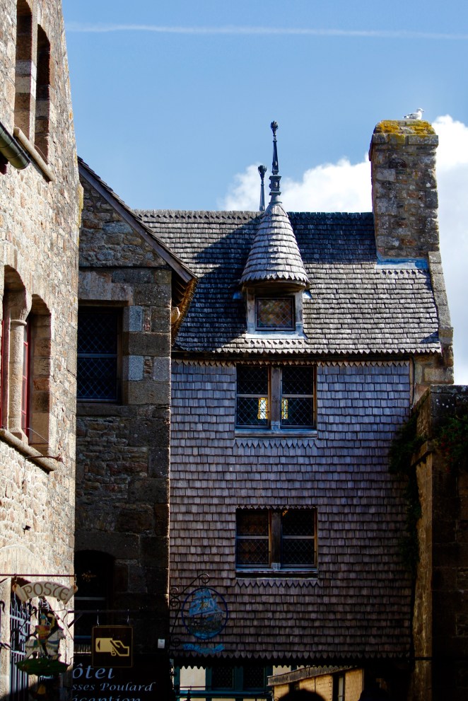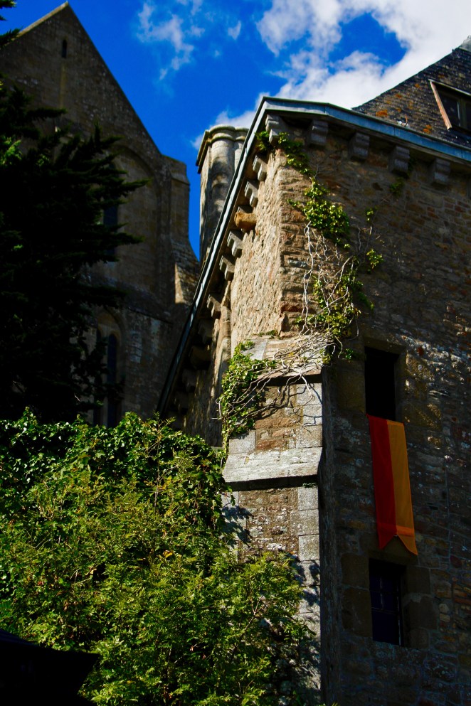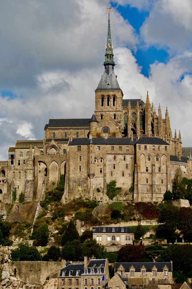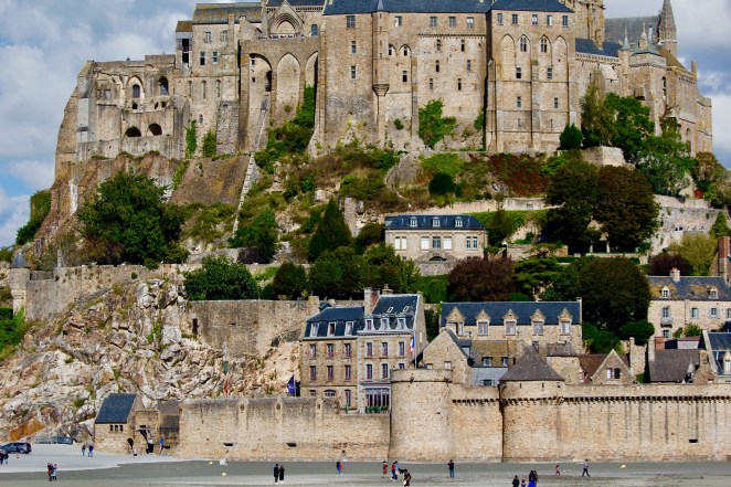 So the story goes (in very lay terms) that the Bishop of Avranches had a vision or premonition that St. Michael (or Saint Michel en Français) instructed him to build an abbey on the rock in the middle of the bay. So he did. The abbey started pretty modestly and was built up through the centuries to the stunning sight it is today. It also changed hands between the Normans and the Bretagnes several times.