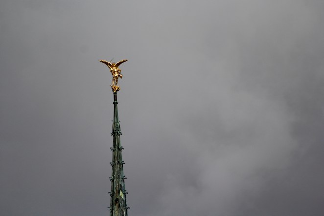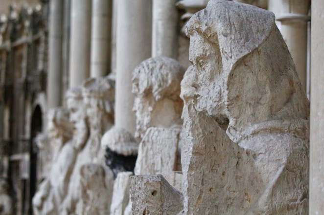 Through the clock and wading through the people and beggars with their dogs, we got to the old market square. The main focal point of the square is now a supremely bizarre 1970s church dedicated to Joan of Arc. Its design is to make it look like flames (I didn’t get a photo, it was enormous). Around some construction fencing we found the poorly labeled spot where Joan of Arc was burned at the stake for heresy at the age of 19. We thought because it was one of the city’s claim to fame, there would be a well marked monument or something, but it turns out, as did Rouen itself, it left us disappointed.