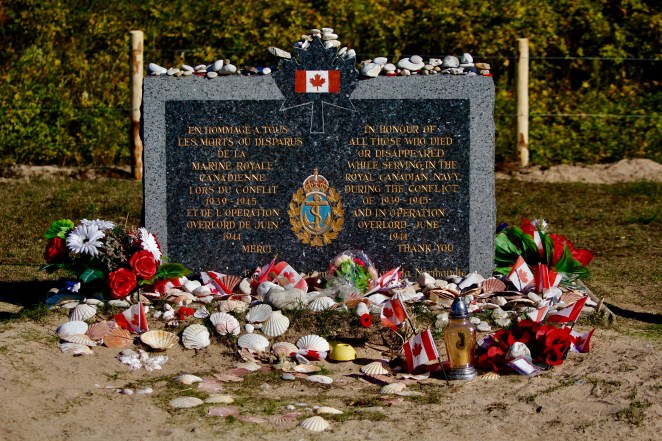 We walked along the beach silently And watched the high tide, and went into the Juno Beach Centre and looked at the exhibits – posters, literature, radio broadcasts, donated relics, uniforms and medals from the period. The walls filled with facts and stories, and boards with the stories of Victoria Cross recipients all along the way. The exhibit ends with a video of footage of D-Day and voice over of Canadian letters written home. The ending, showing soldiers disappearing from photos and ending with the words “They walk with you/dans leur pas” is when my emotions got the better of me and I just let the tears stream freely down my face. I would like to think that I feel emotional about it because I work so closely with people who have served in the Canadian Forces and I care about them, but I think it’s more because I cannot process the heroism of very young men who volunteered in a time of need and were lost, and their families and friends who had to continue on without them. Maybe it’s both.