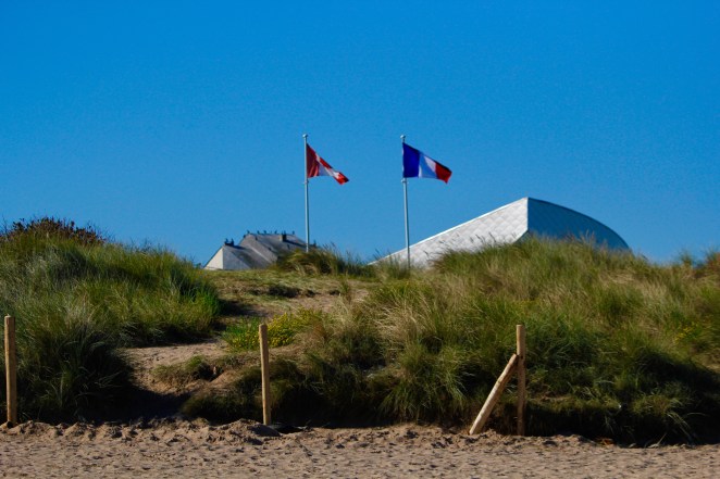 For those of you unawares, there were 5 beaches stormed on June 6th, 1944 marking the start of the Battle of Normandy in WWII – the American forces stormed Omaha and Utah, the British stormed Gold and Sword, and Canada stormed Juno. Canada recently built an interpretive centre at Juno Beach, with Canadian employees running the exhibits.