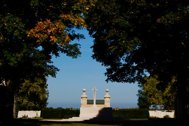 Our first stop of the day was Tyne Cot Commonwealth Cemetery. Tyne Cot is the largest commonwealth cemetery in the world and is the final resting place for 11,965 Brits, Scots, Irishmen, Canadians, Australians, New Zealanders, Indians and more. Of the almost 12,000 graves, 8,369 are unnamed, and just bear the phrase “A Soldier of the Great War”. Along with the graves there is a wall that stretches the width of the cemetery and on it is written the 34,959 names of the men who are unaccounted for.