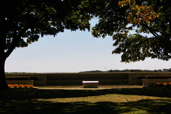 After finishing up in the trenches, we walked back to the car, ate our picnic lunch and headed to another French site that I wanted to see – Beaumont-Hamel Newfoundland Memorial. The site is 45 minutes south west of Vimy, and along the poppy-lined country roads were many many war cemeteries, mostly British.