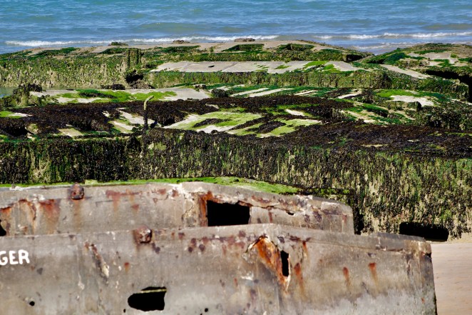 Driving towards Arromanches-les-Bains we noticed French, British, American and Canadian flags flying in the distance, so we drove towards them to see what was there. Turns out a large panoramic viewing platform had been built and part of the harbour was on display.
