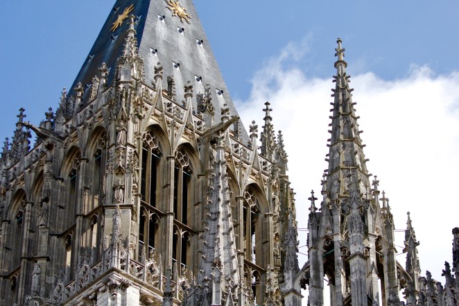 This was our last full day in France before leaving for Ypres, Belgium tomorrow, and I was excited for our plans – we were checking out the capital of Normandy, Rouen. Rouen is famous for two things – its staggering gothic Notre Dame Cathedral, and the execution site of Jeanne d’Arc, known to us anglos as Joan of Arc.