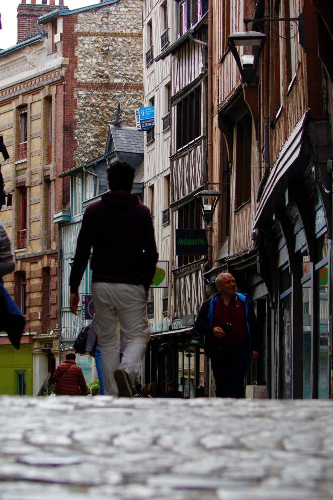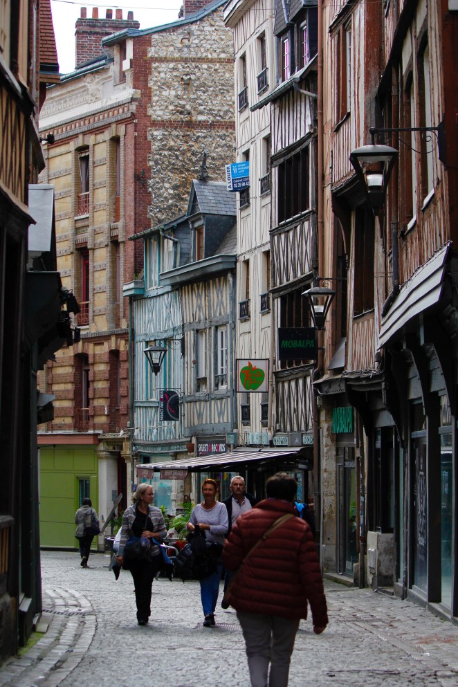 We left the Cathédrale and headed down the pedestrian-only street, lined with half-timbered Norman houses, and eventually the Gros Horloge, or “big clock”.