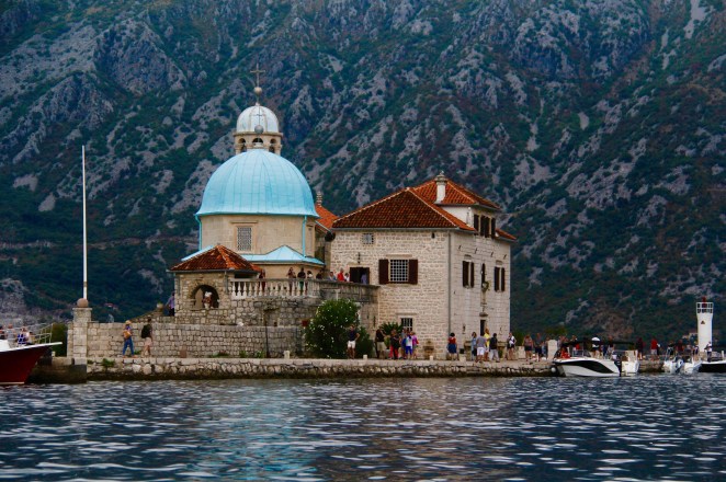Finally we were on the road again, driving past Lake Skadar (which we will be visiting later on the trip), through the nation’s capital Podgorica (which we were gonna visit later on the trip but have since decided that we don’t need to), then started up another narrow mountain road, punctuated by switchback after switchback. Eventually we ended up at a parking lot with a few other big tour buses, and thought “well this is it, time to hike up!” Instead, our tour director said to us “now we taxi”. I laughed out loud to Ma and Pa and exclaimed “what the fuck is going on??” We climbed off the big bus and into some sort of soviet era van with dubious seating, curtains, and a fan screwed to the ceiling. Clinging to the seat in front of me for dear life, we zipped up even more switchbacks, honking at other cars trying to come down the mountain.